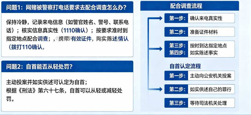 情形 A: 你还没接到电话,自己觉得心里不安,主动去派出所说“我玩了开云”,这叫典型自首。